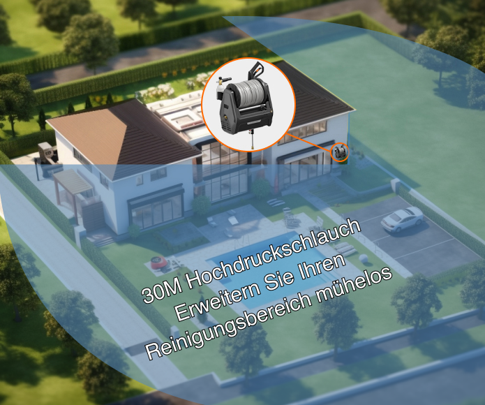 • Erreichen Sie jedes Reinigungsziel: Ausgestattet mit einem 100 Fuß langen Hochdruckschlauch, ermöglicht er eine einfache Reinigung überall.